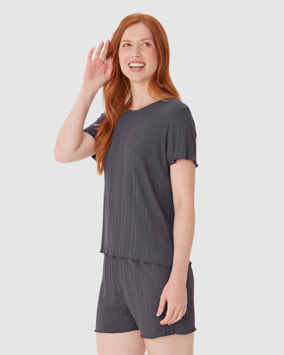 FemininoPijamasPijamas CurtosPijama Curto Feminino Blusa Manga Curta E Shorts Em Malha De Viscose Canelada