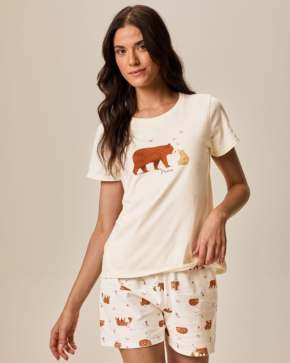 Pijama Curto Feminino Estampa Especial Mães E Filhas Em Malha Algodão