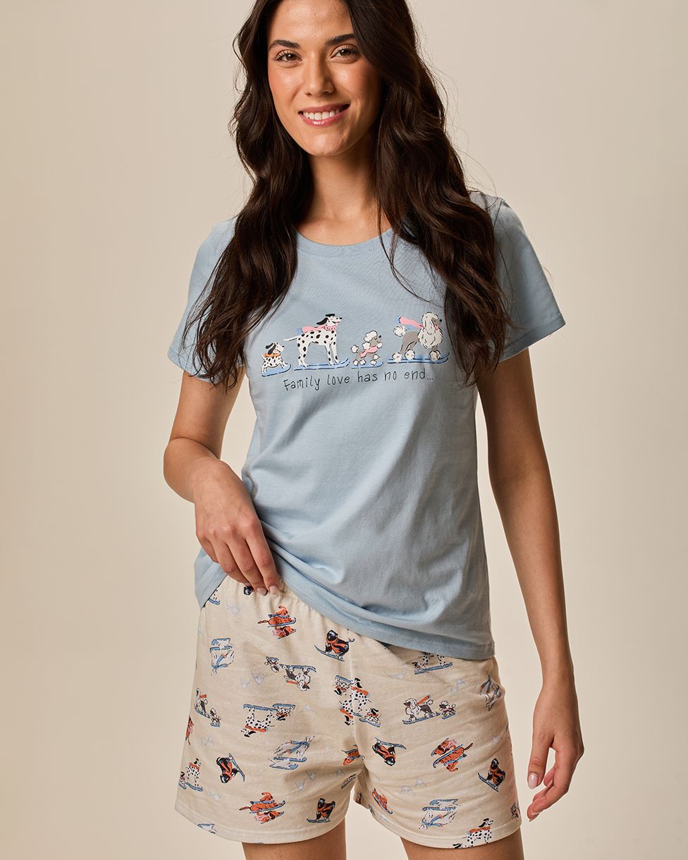 Pijama Curto Feminino Family Love Has No End Em Malha Algodão