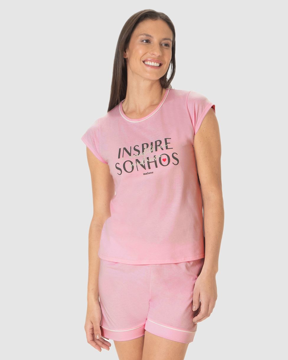 Pijama Curto Feminino Inspire Sonhos E Acredite Na Mudança Em Algodão