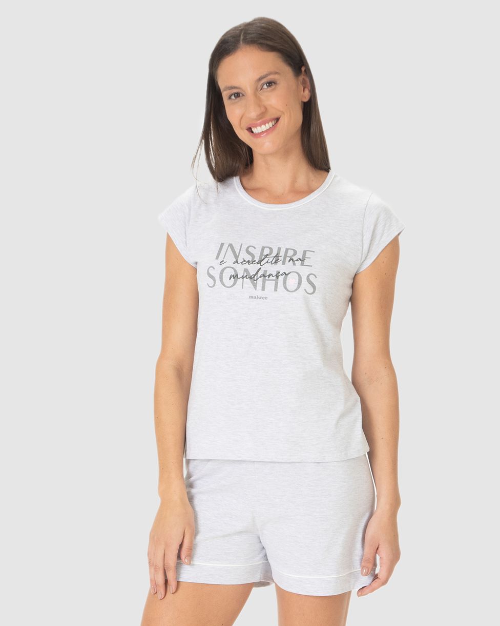 Pijama Curto Feminino Inspire Sonhos E Acredite Na Mudança Em Algodão