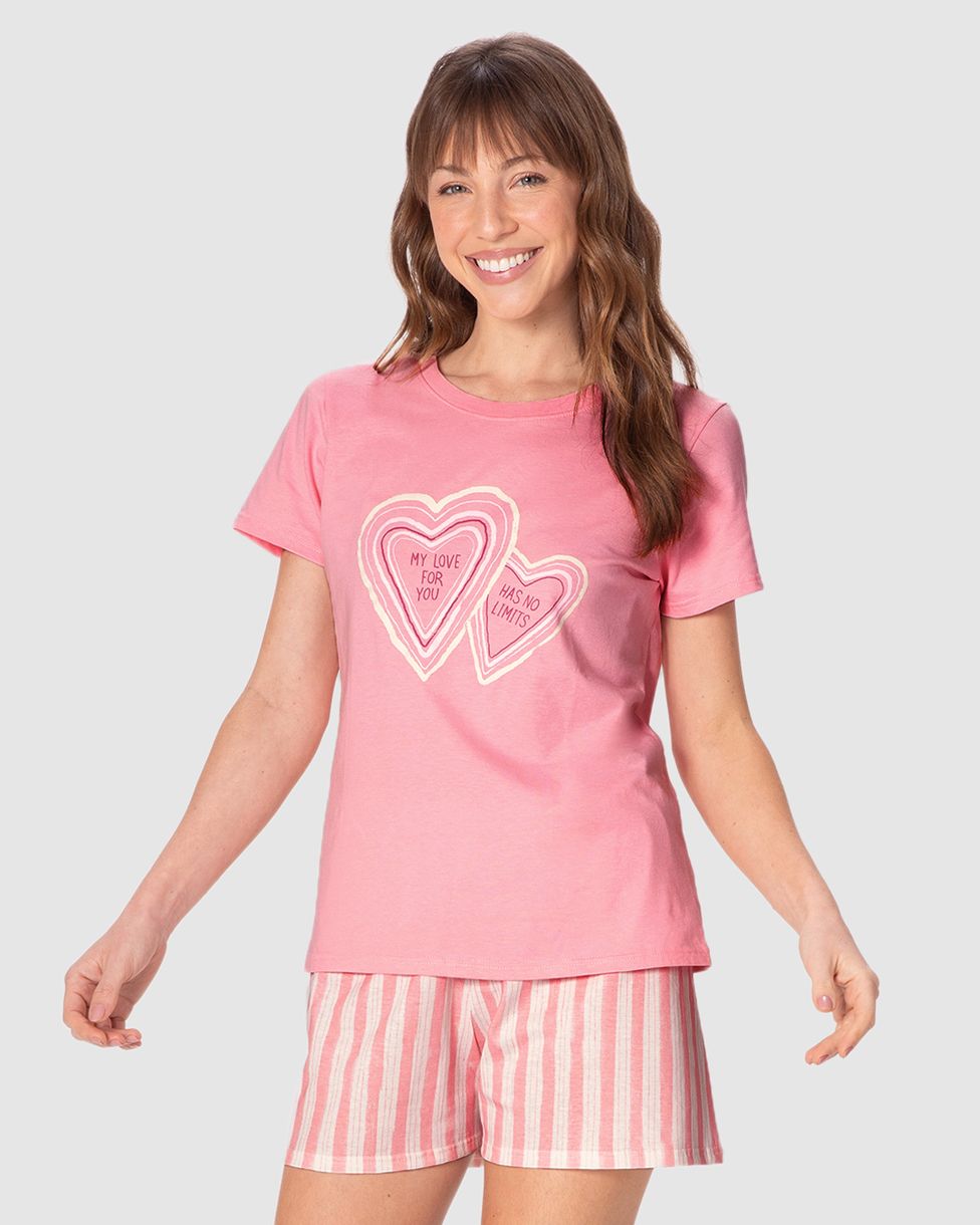 Pijama Curto Feminino My Love For You Has No Limits Em Malha Algodão Rosa - XGG