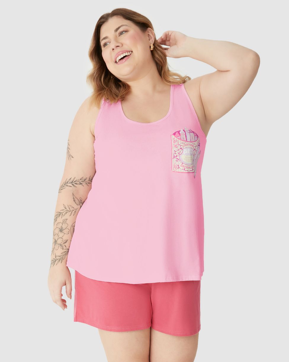 Pijama Curto Feminino Plus Size Beauty Dream Em Algodão Rosa - G2