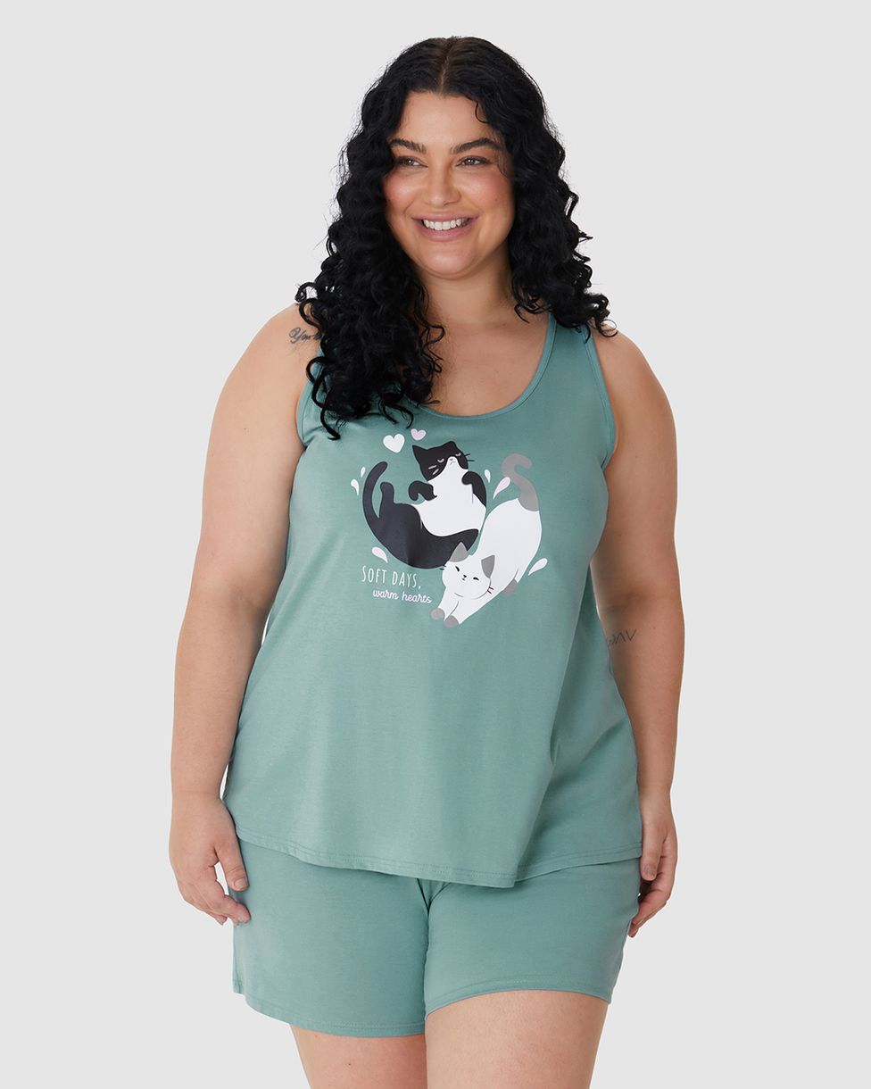 Pijama Curto Feminino Plus Size Softs Days Warm Hearts Em Algodão