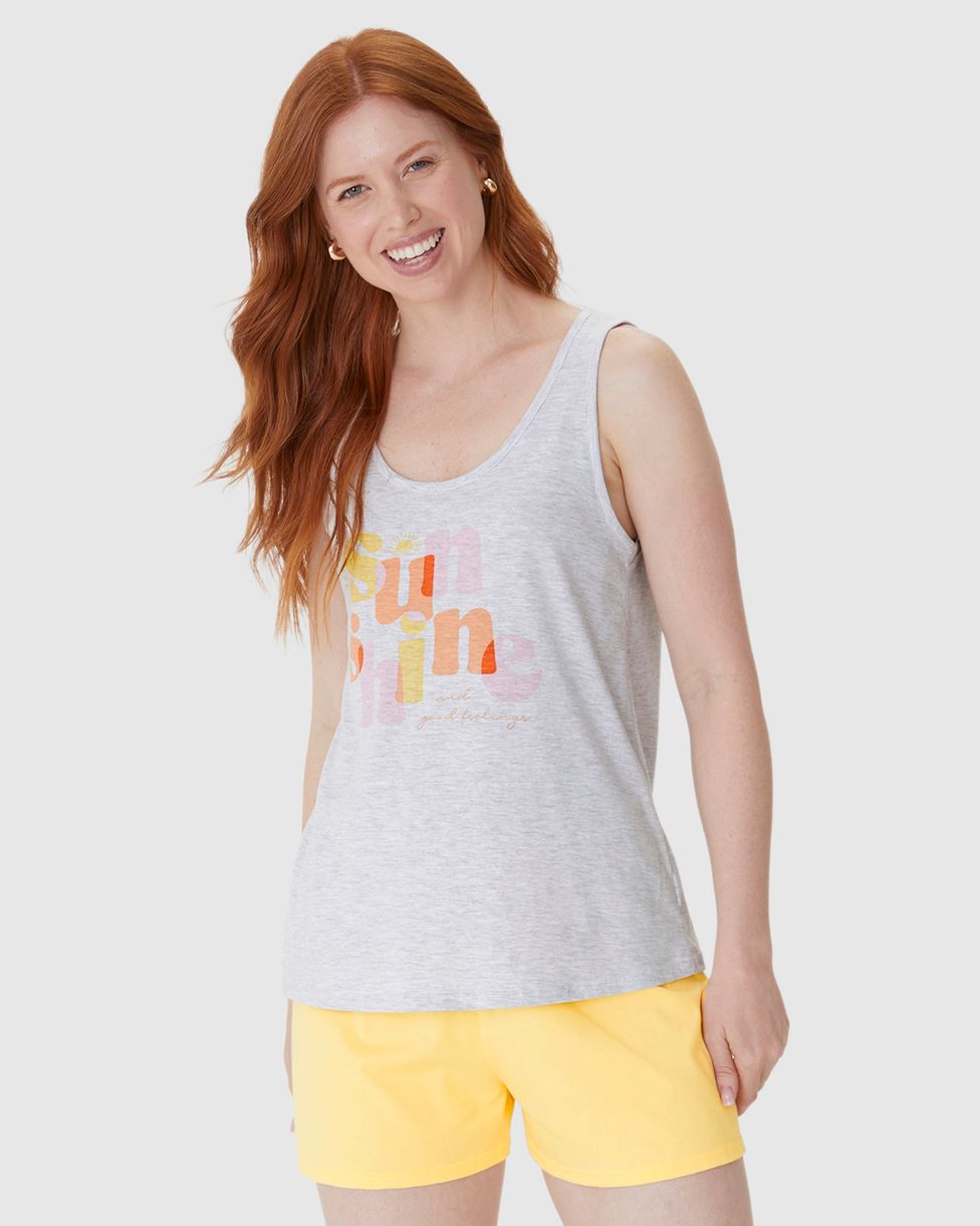 Pijama Curto Feminino Regata Estampa Frontal Em Algodão