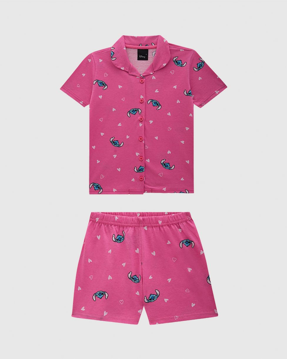 Pijama Curto Infantil Menina Americano Stitch Disney Em Algodão Malwee Kids