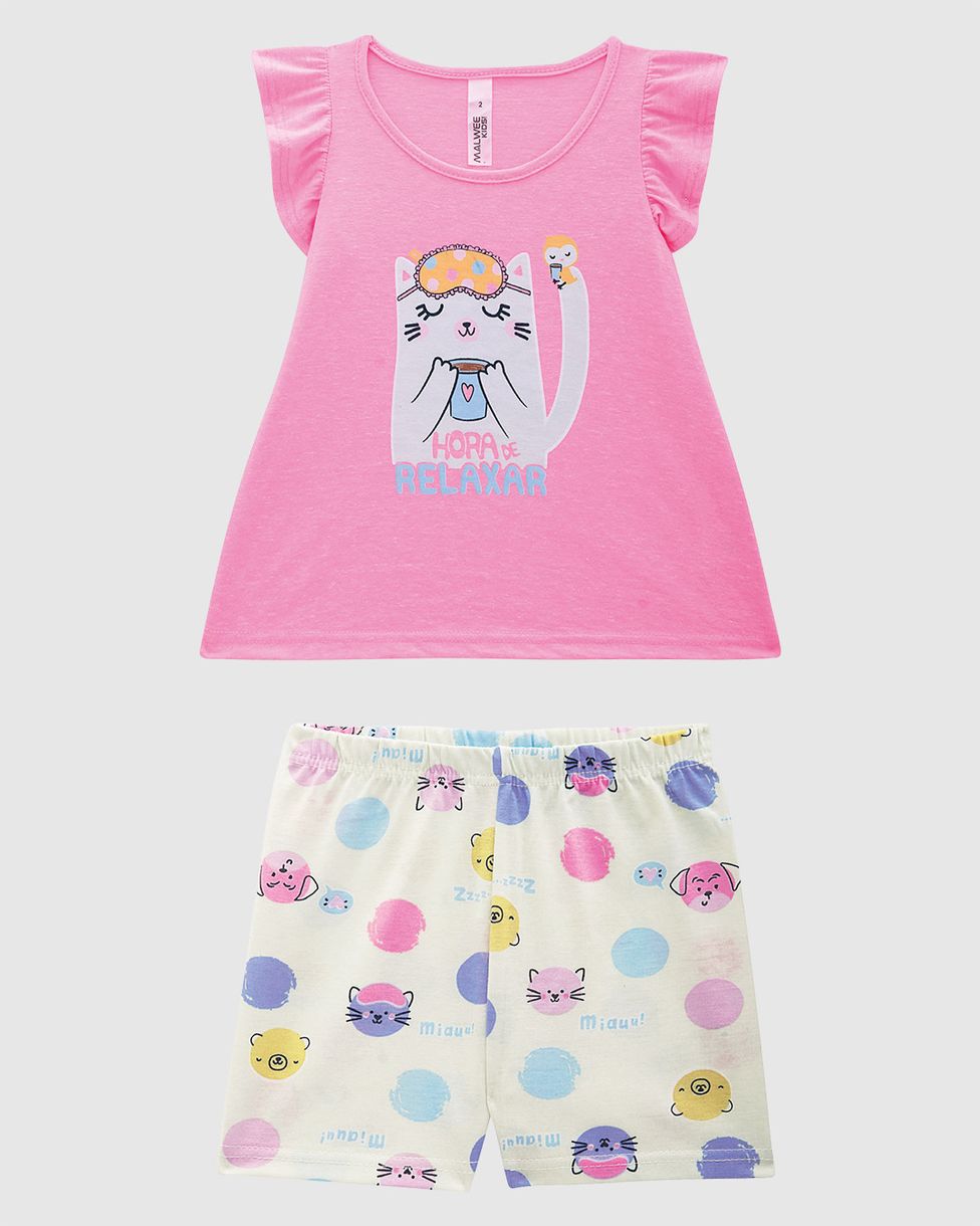 InfantilPijamasPijamas CurtosPijama Curto Infantil Menina Blusa Manga Franzida Em Algodão Malwee Kids