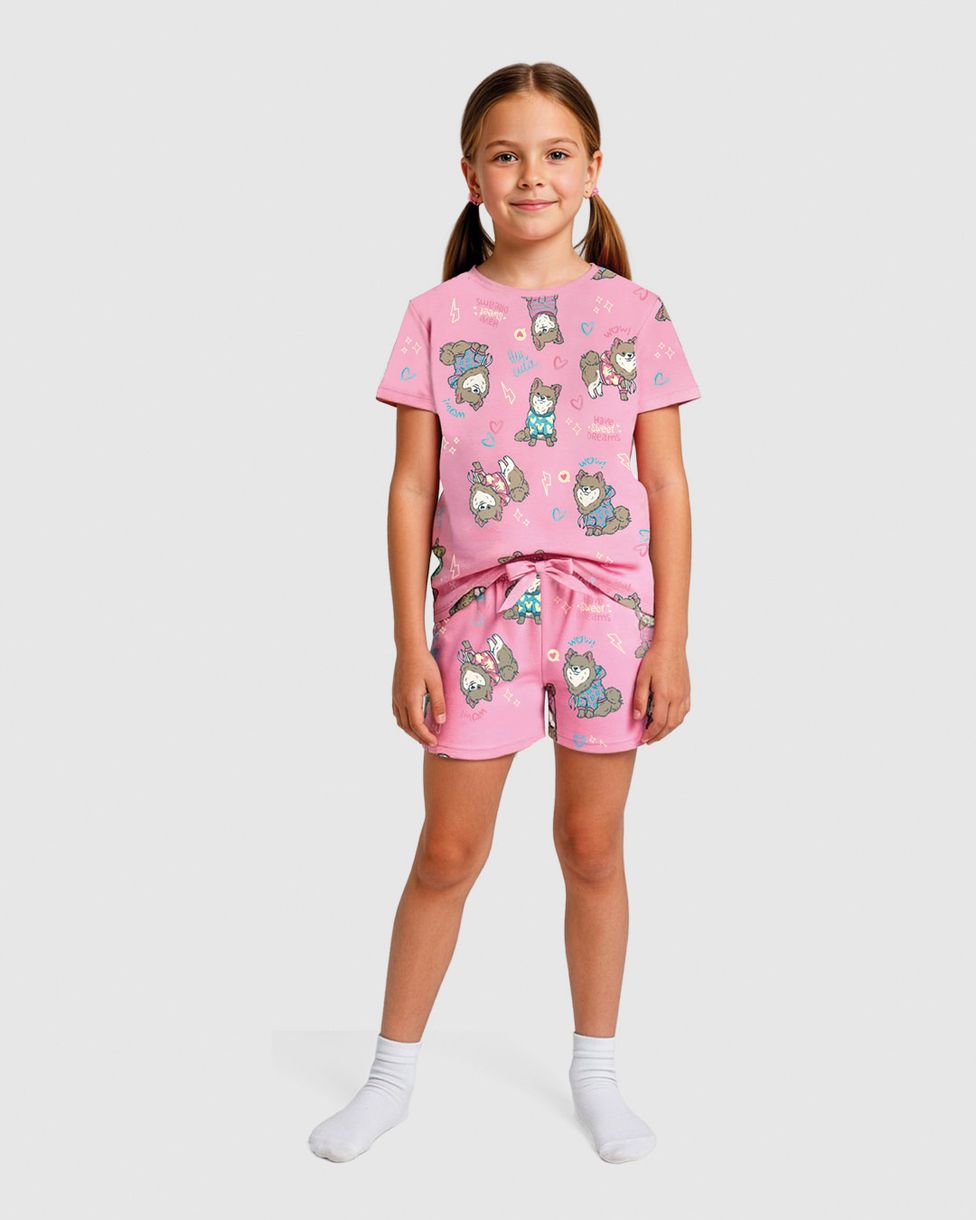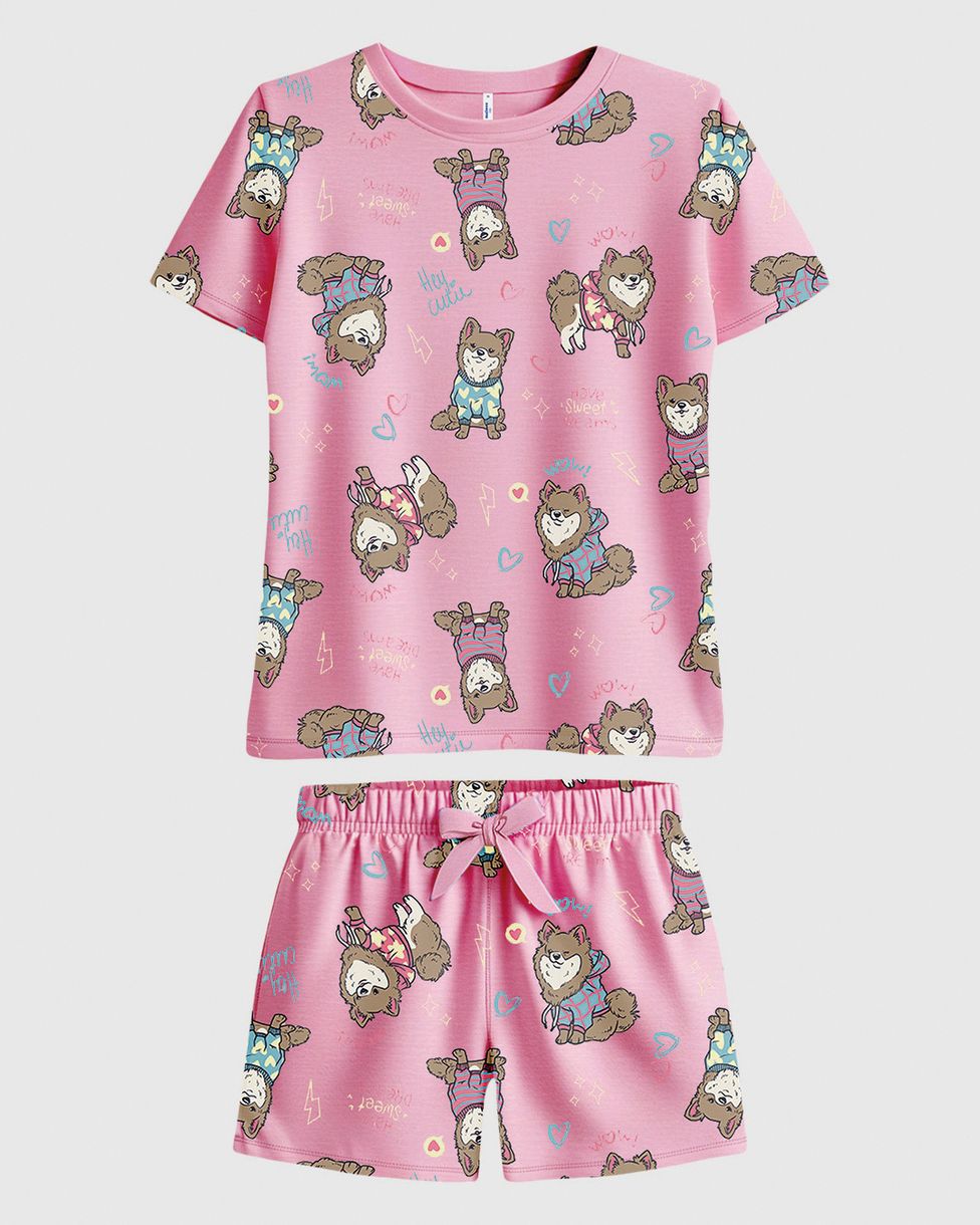 Pijama Curto Infantil Menina Estampa Corrida Em Algodão Malwee Kids
