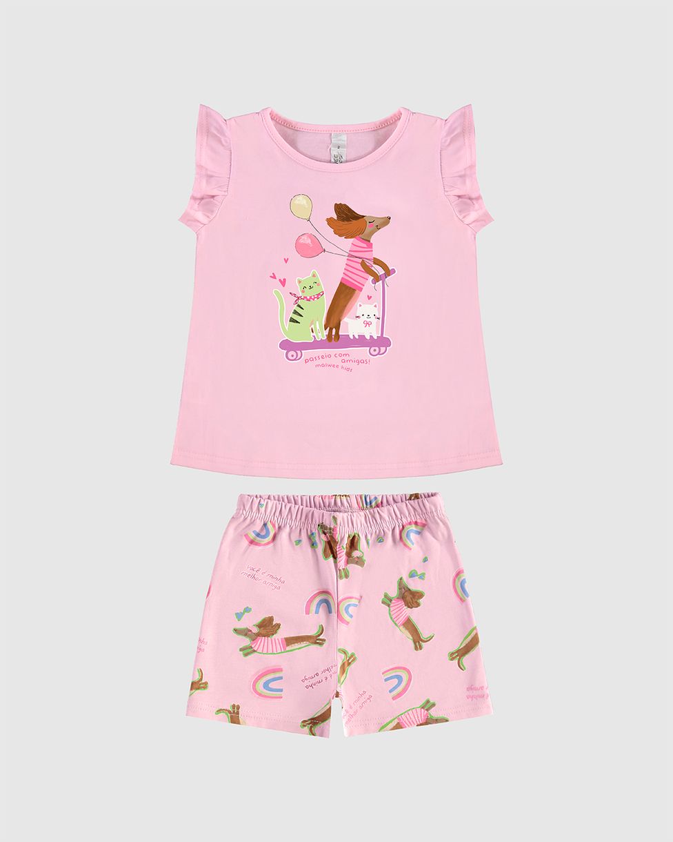Pijama Curto Infantil Menina Passeio Com Amigos Em Algodão Malwee Kids