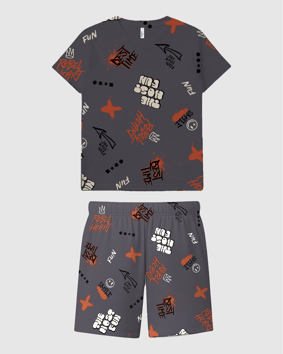 Pijama Curto Infantil Menino Estampa Corrida Em Algodão Malwee Kids