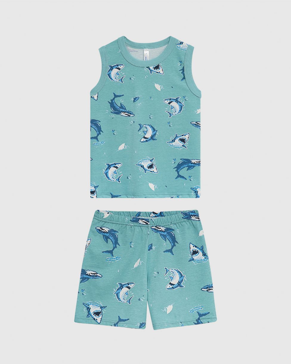 Pijama Curto Infantil Menino Regata E Shorts Estampado Algodão Malwee Kids