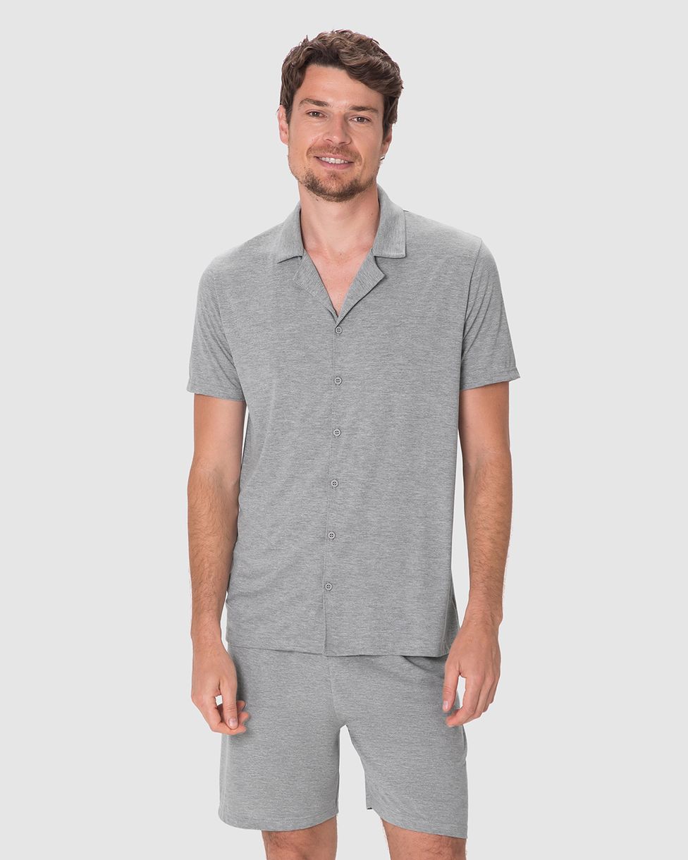 Pijama Curto Masculino Camisa Abotoamento Frontal Em Viscose Stretch