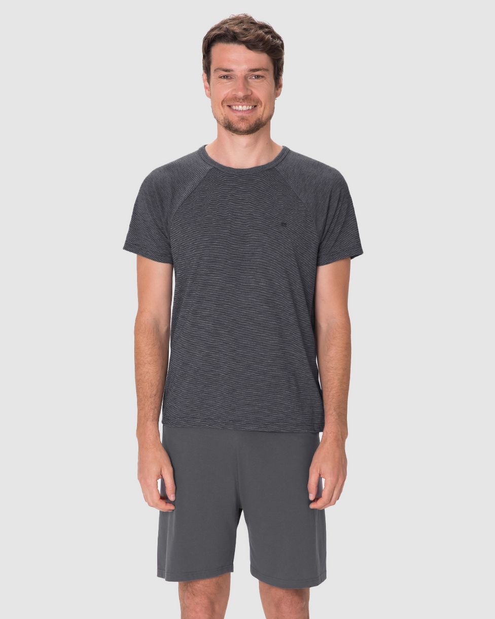 Pijama Curto Masculino Camiseta Manga Curta Em Malha Fio A Fio