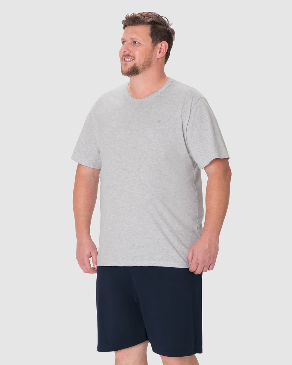 Pijama Curto Masculino Plus Size Detalhe Bordado Em Algodão