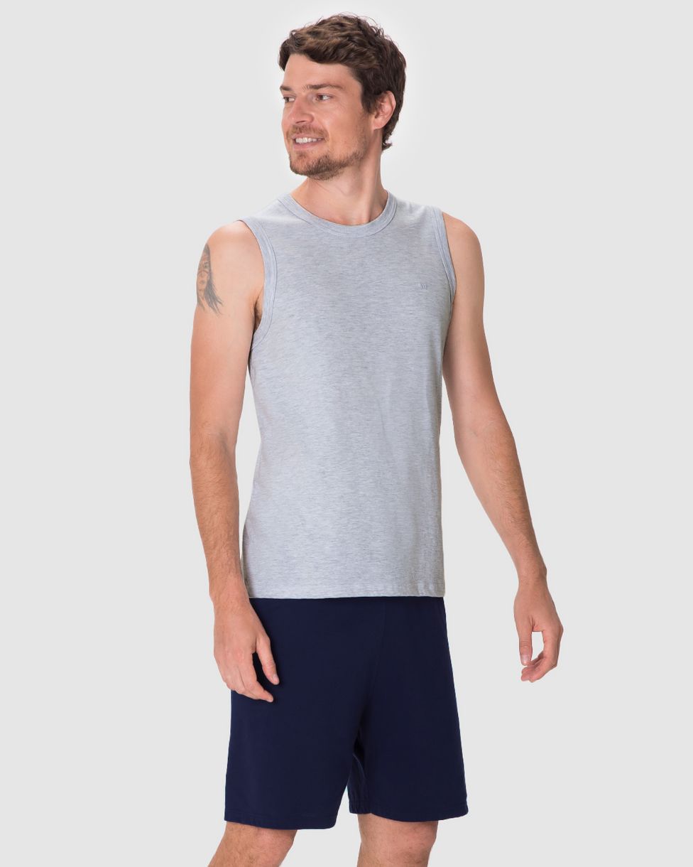 Pijama Curto Masculino Regata Alça Larga Em Malha Algodão