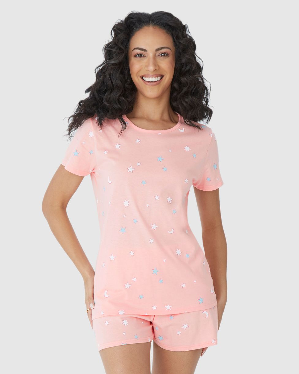 Pijama Feminino Blusa E Shorts Estampado Em Algodão