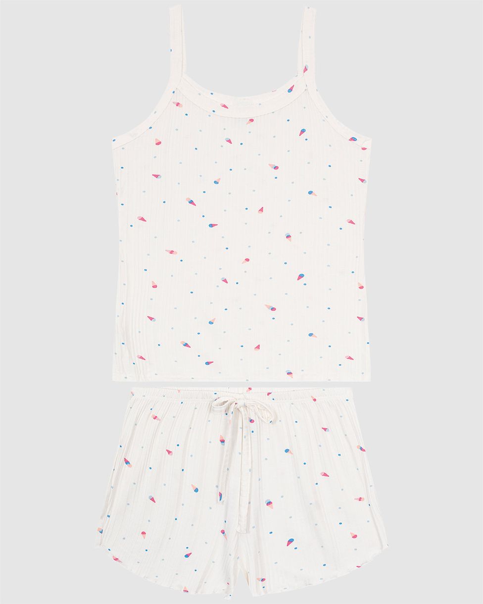 Pijama Feminino Estampado Regata Alça Fina Em Malha Viscose Canelada