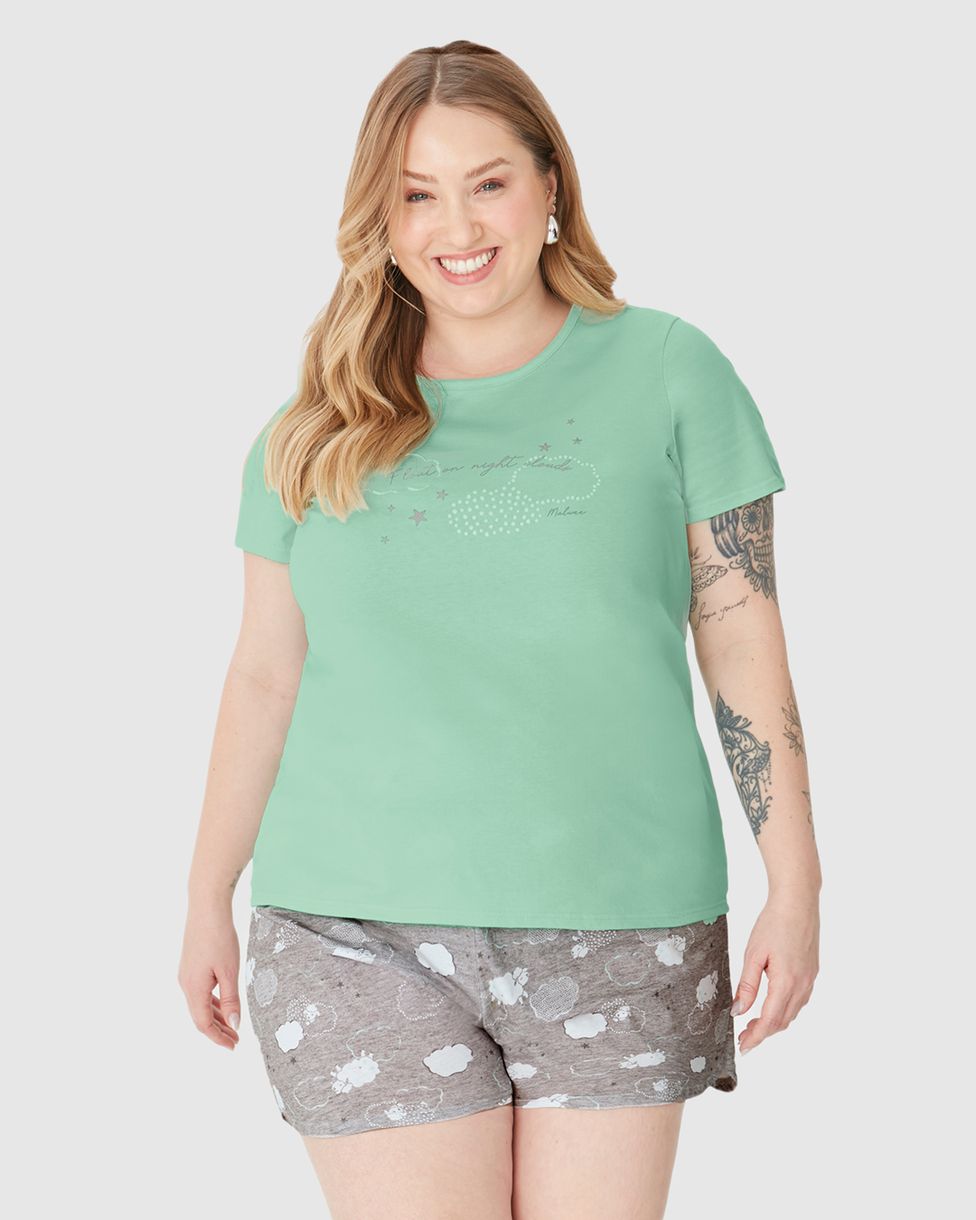Pijama Feminino Plus Size Float On Night Clouds Em Algodão