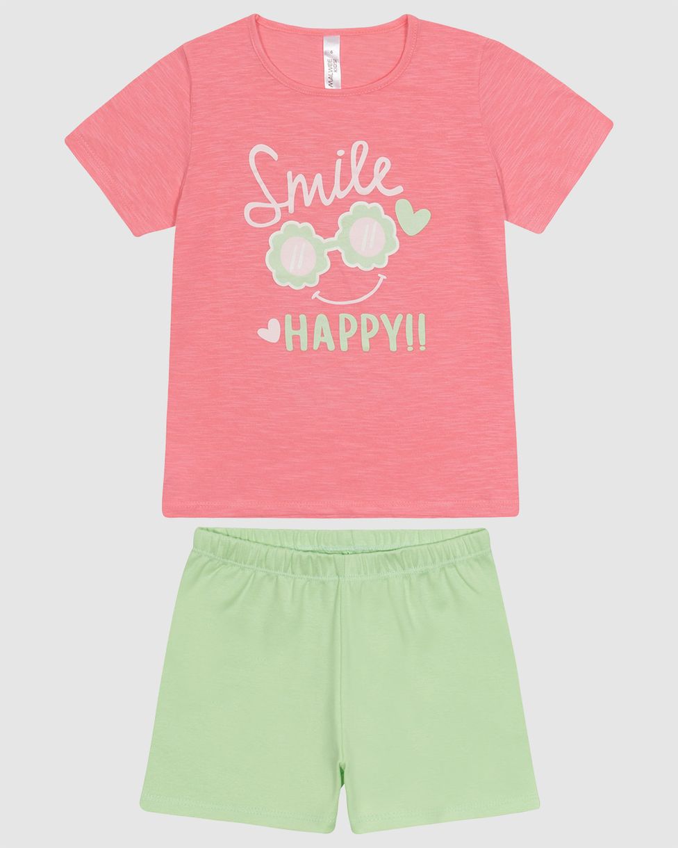 InfantilPijamasPijamas CurtosPijama Infantil Menina Blusa Estampa Frontal Em Algodão Malwee Kids