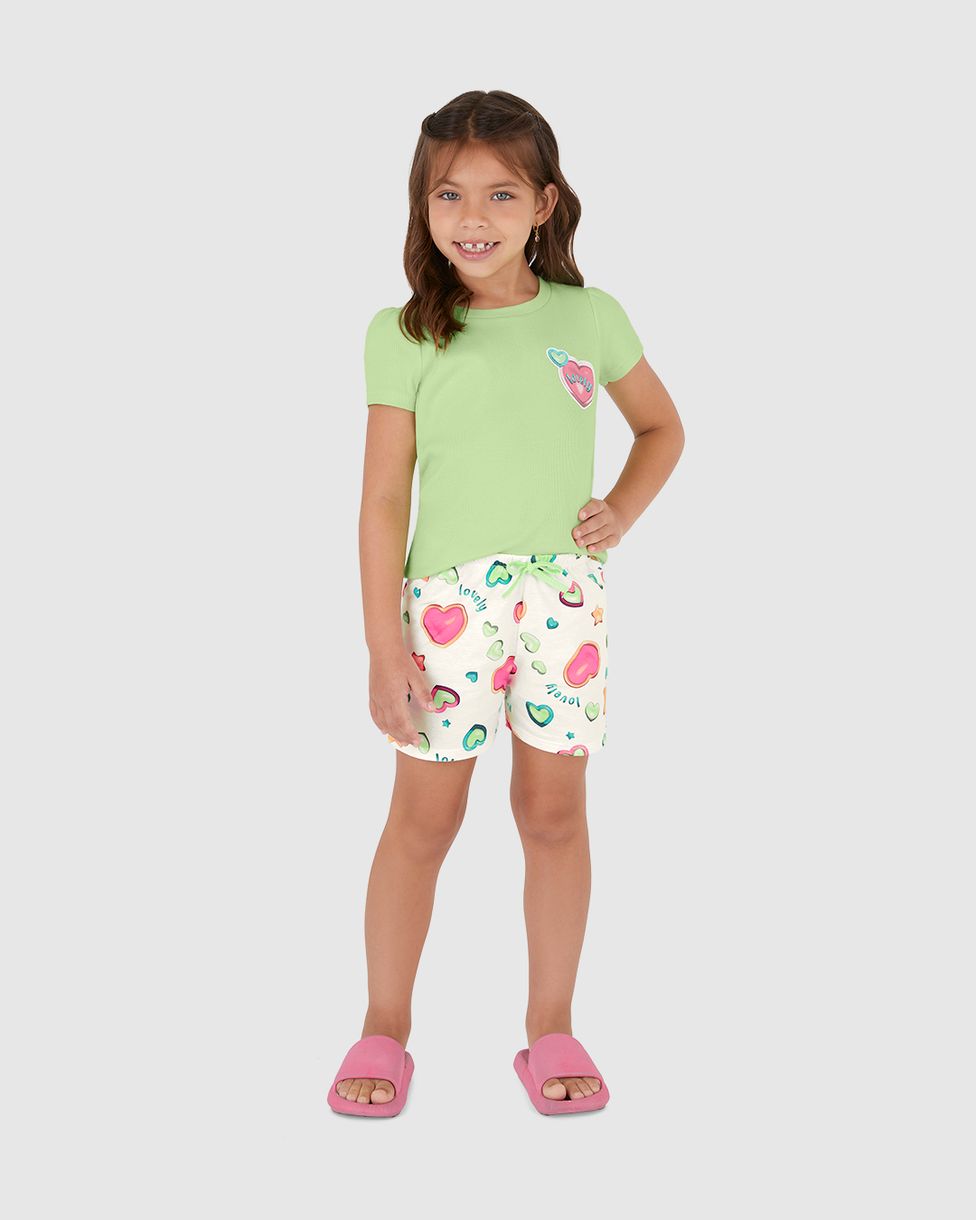 InfantilPijamasPijamas CurtosPijama Infantil Menina Blusa Estampa Lovely Em Ribana Malwee Kids