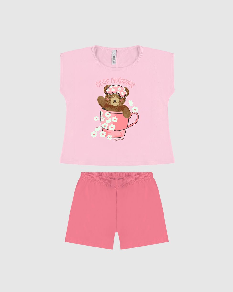 Pijama Infantil Menina Blusa Estampa Ursinho Em Algodão Malwee Kids
