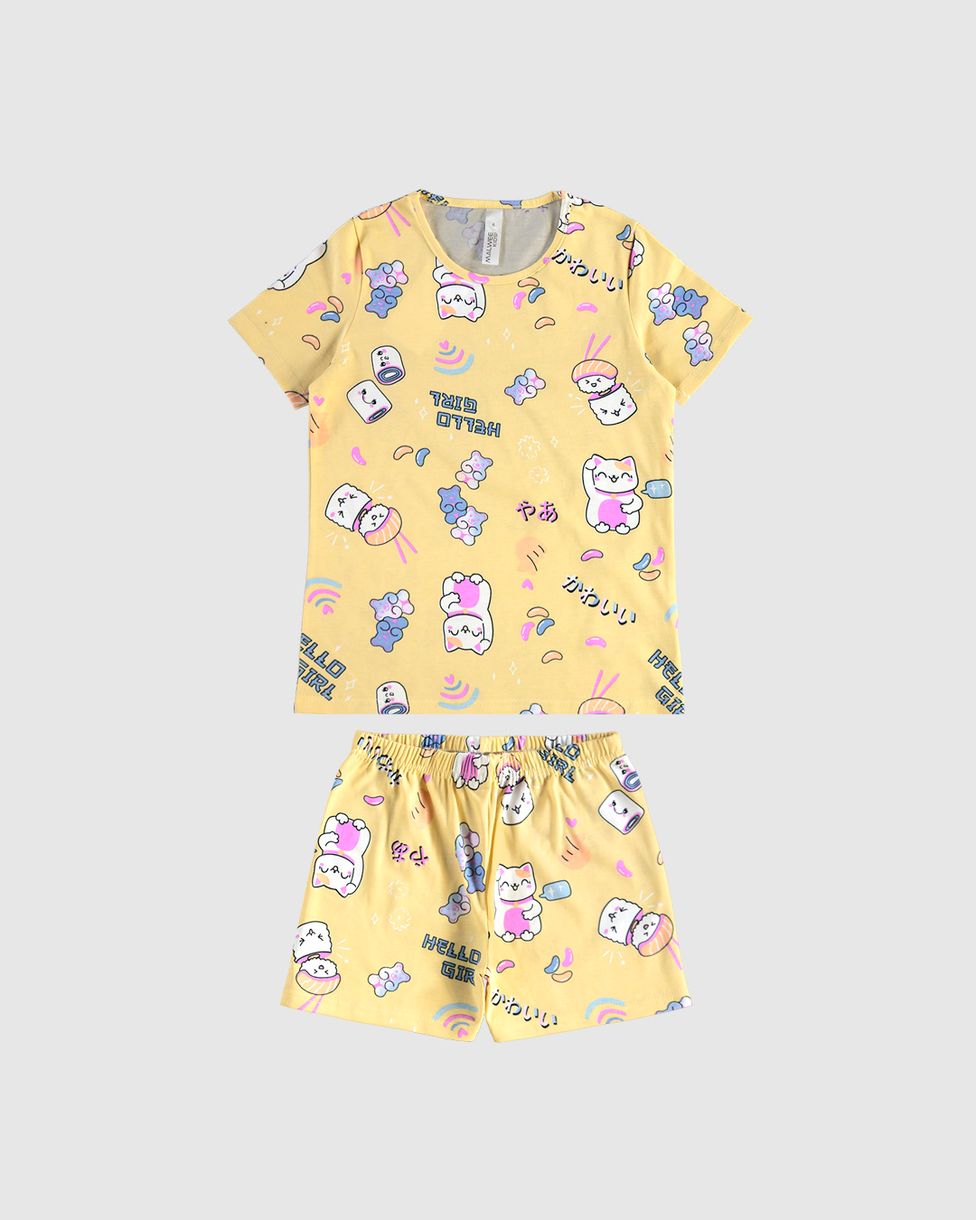 InfantilPijamasPijamas CurtosPijama Infantil Menina Estampa Gatos Em Algodão Malwee Kids