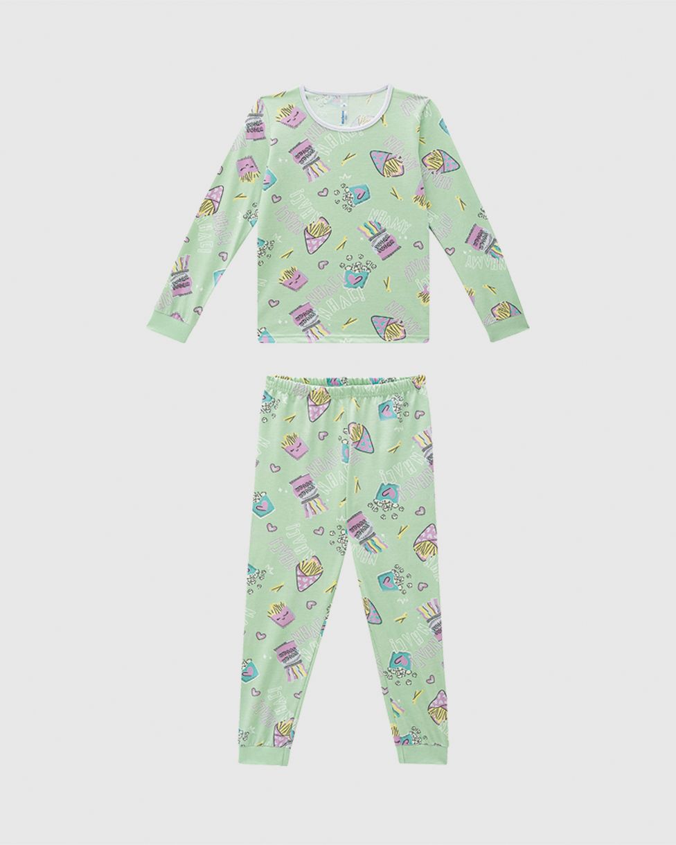 Pijama Infantil Menina Estampado Camiseta Manga Longa Em Algodão Malwee Kids