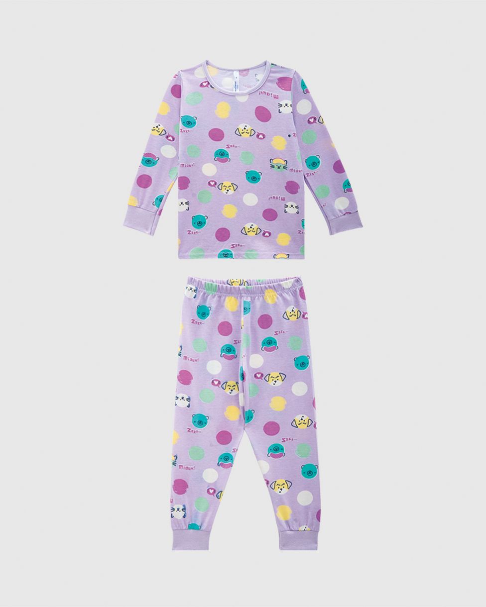 InfantilPijamasPijamas LongosPijama Infantil Menina Manga Longa Com Punho Em Algodão Malwee Kids