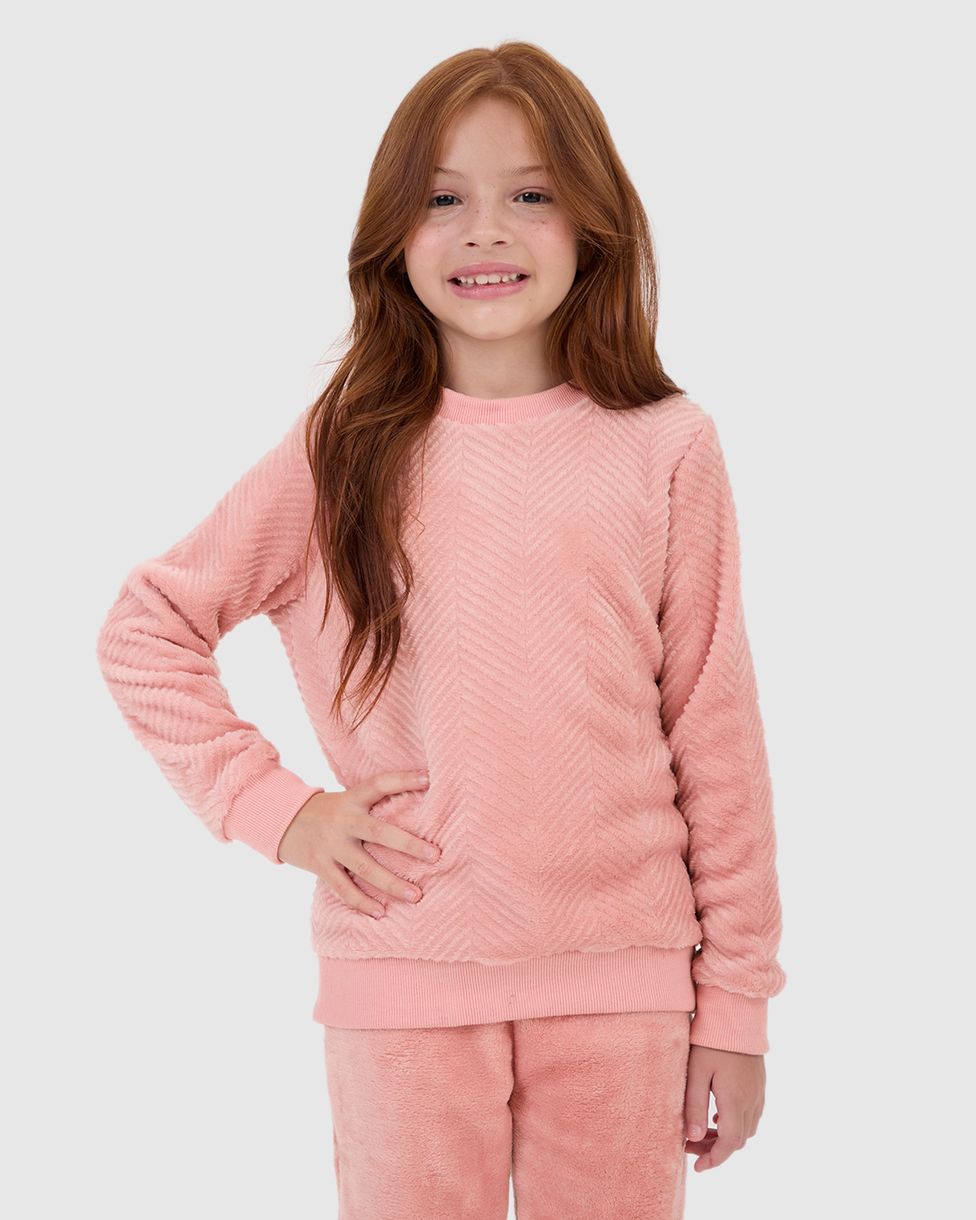 Pijama Infantil Menina Manga Longa Em Fleece Malwee Kids