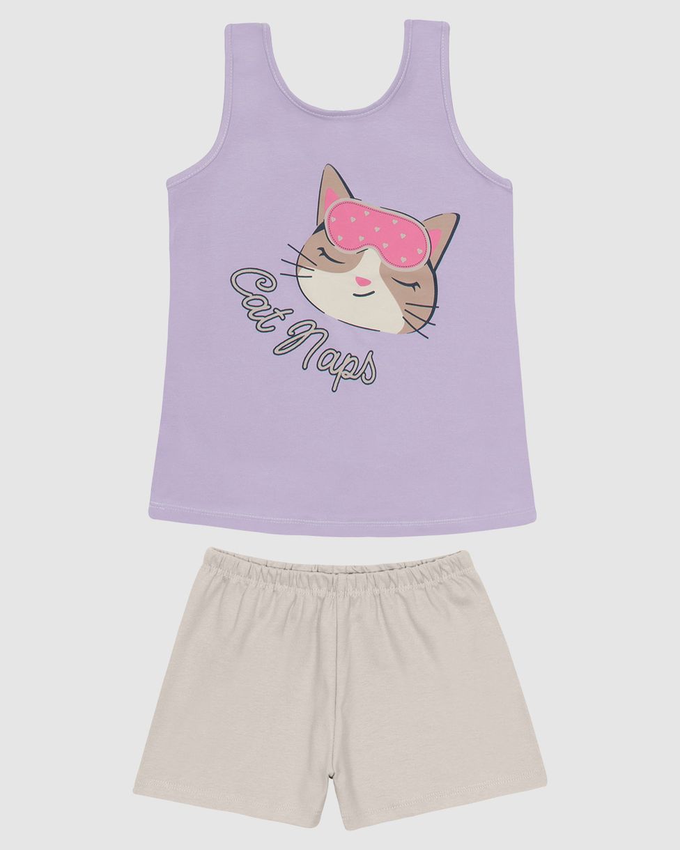 InfantilPijamasPijamas CurtosPijama Infantil Menina Regata Estampa Frontal Em Algodão Malwee Kids