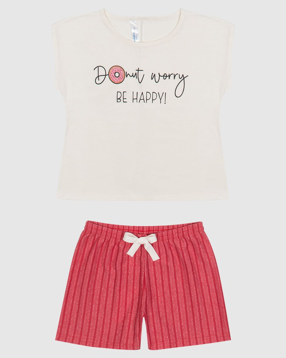 Pijama Infantil Menina Shorts Em Malha Listrada Malwee Kids