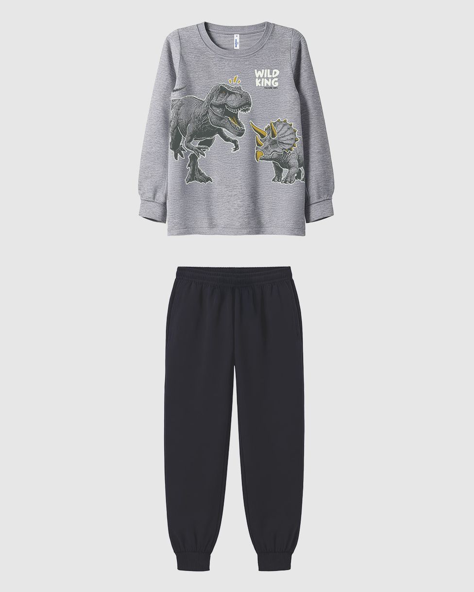 O Pijama Infantil Menino Malwee Kids é ideal para noites de sono repletas de aventura e conforto. Feito em malha algodão, este conjunto de camiseta manga longa e calça apresenta estampas modernas de dinossauros que brilham no escuro, garantindo um visual lúdico e toque macio na pele.