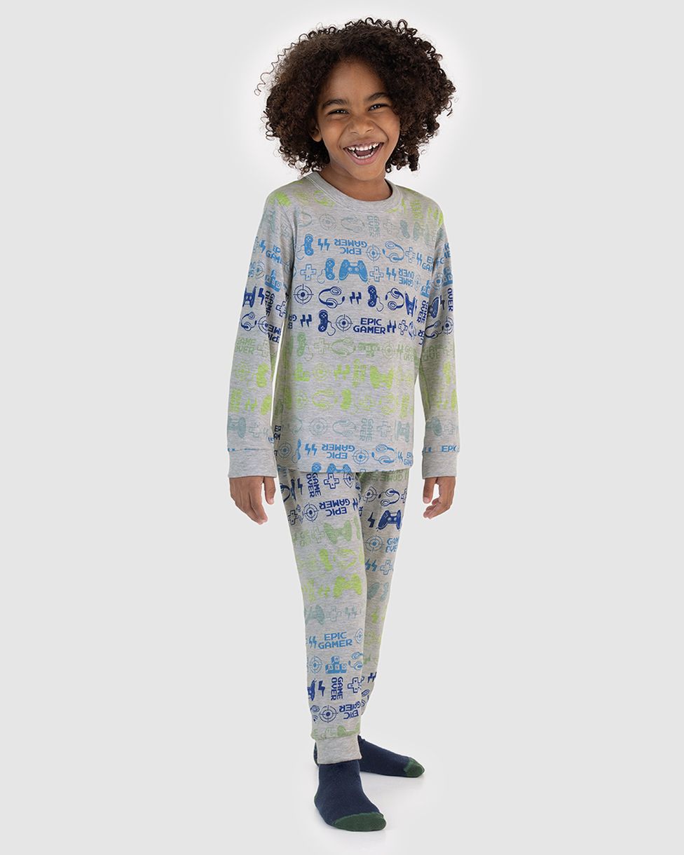 Pijama Infantil Menino Estampado Camiseta Manga Longa Em Algodão Malwee Kids Cinza - 14