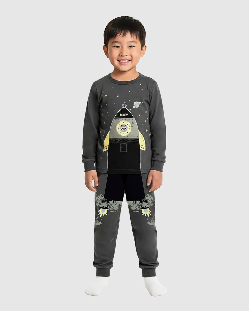 Pijama Infantil Menino Foguete Brilha No Escuro Em Algodão Malwee Kids