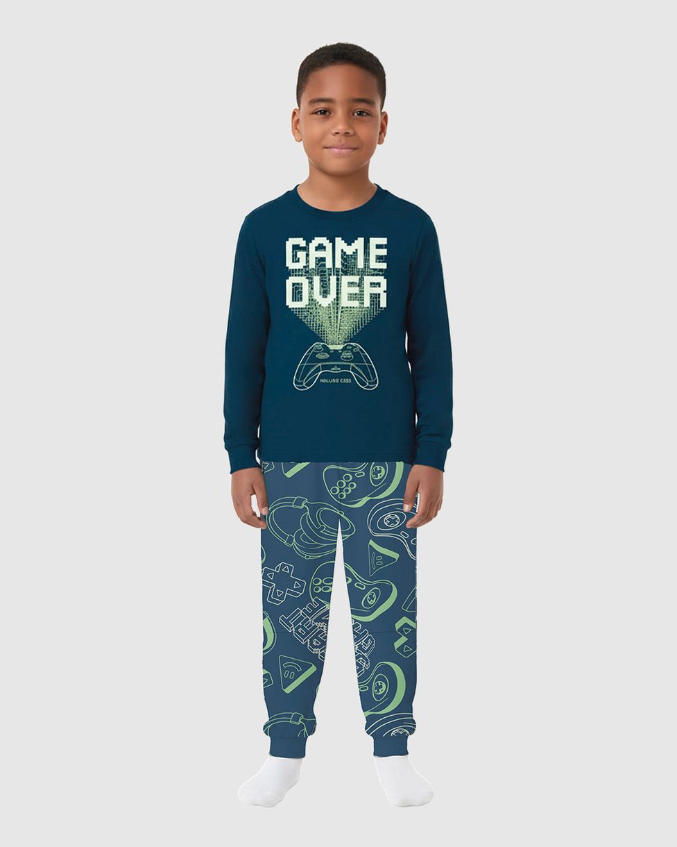 Pijama Infantil Menino Game Over Brilha No Escuro Em Algodão Malwee Kids