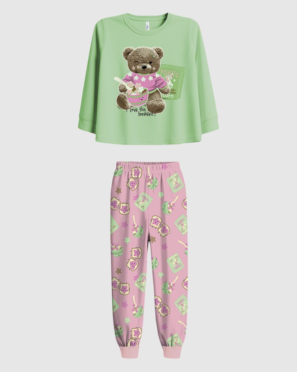 Pijama Longo Infantil Menina Calça Estampada Brilha No Escuro Malwee Kids