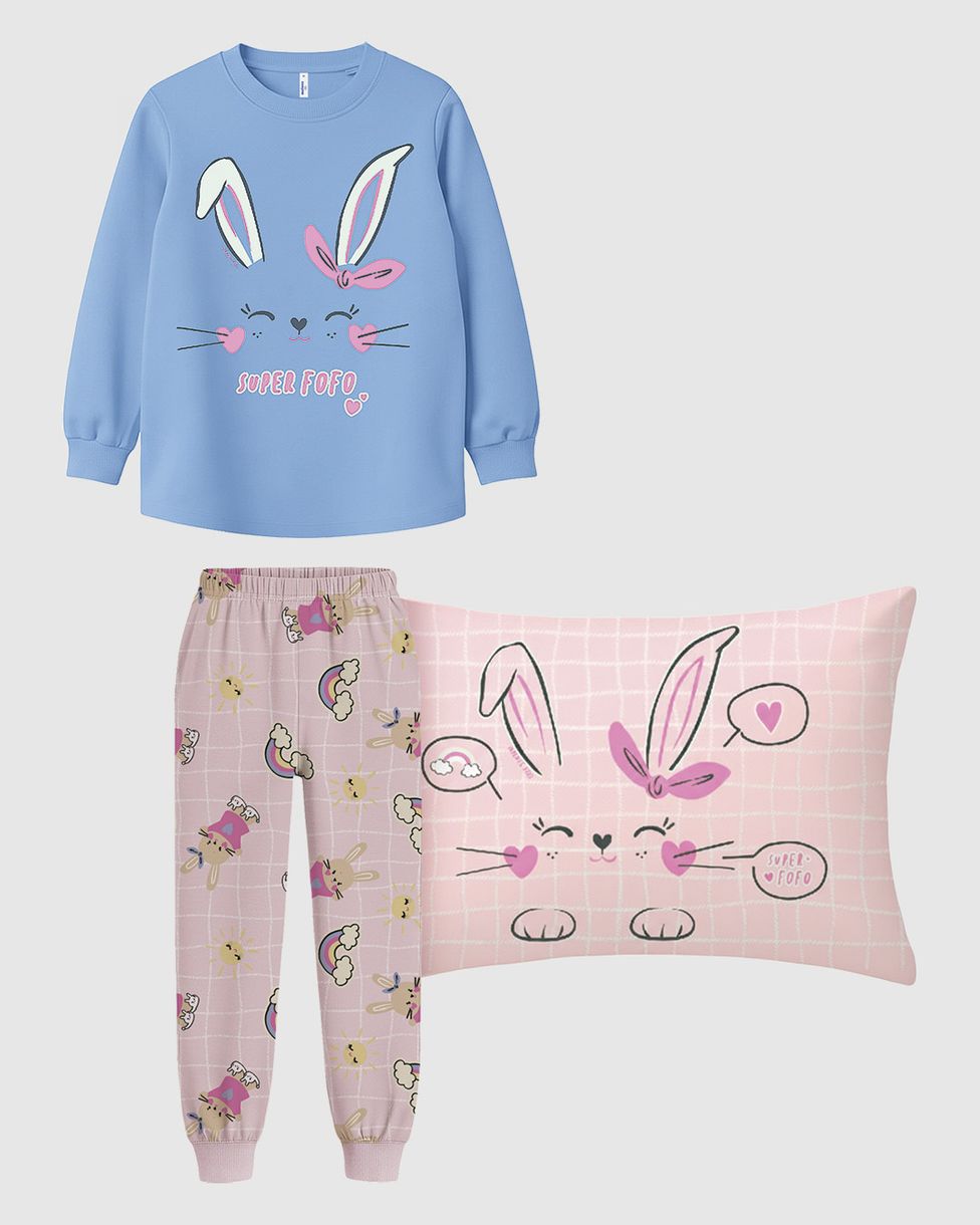 Pijama Longo Infantil Menina Estampa Super Fofo + Fronha Algodão Malwee Kids