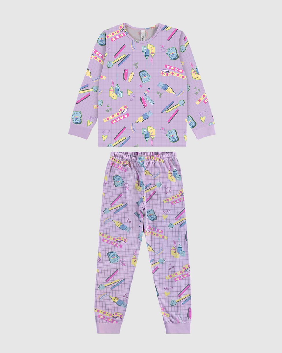 InfantilPijamasPijamas LongosPijama Longo Infantil Menina Estampado Em Algodão Malwee Kids