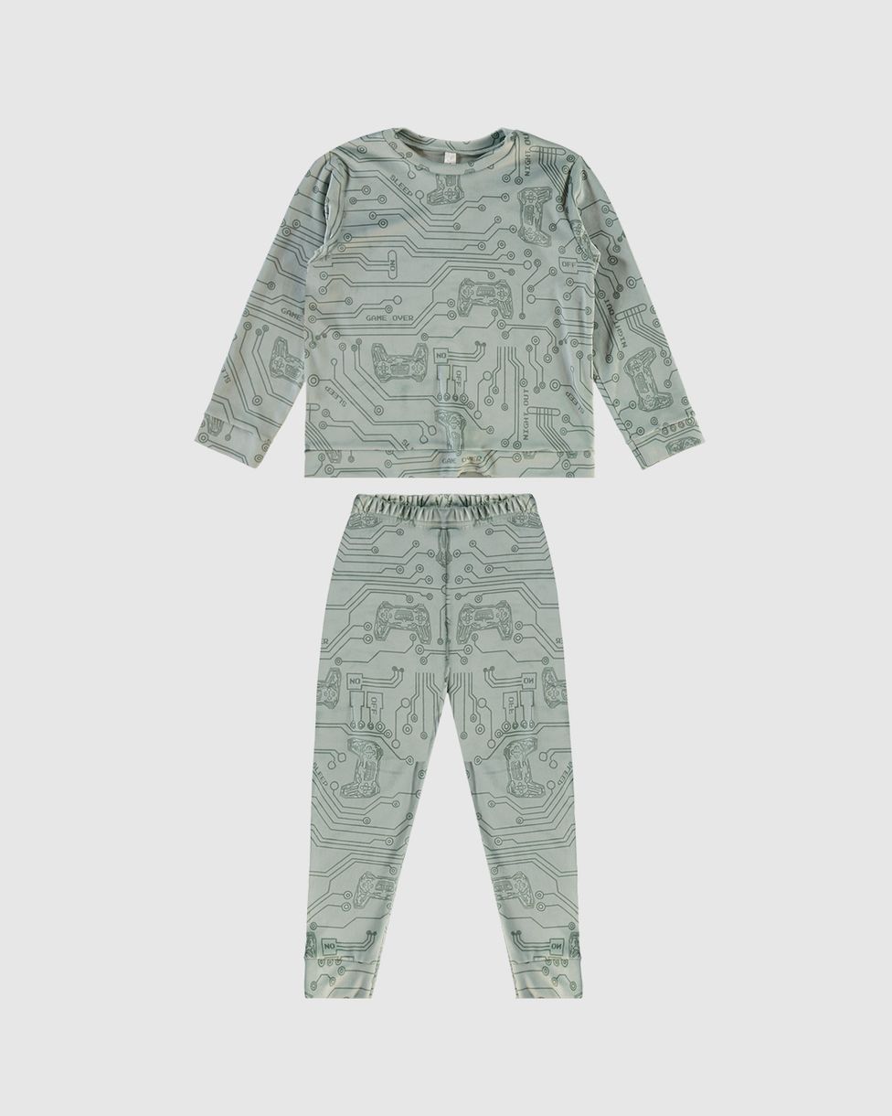 Pijama Longo Infantil Menino Estampa Lettering Em Malha Plush Malwee Kids