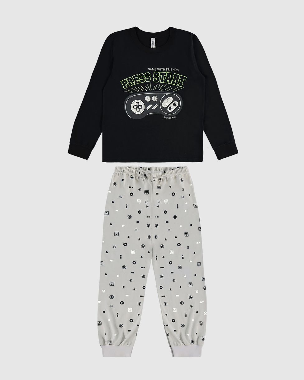 Pijama Longo Infantil Menino Press Start Em Algodão Malwee Kids