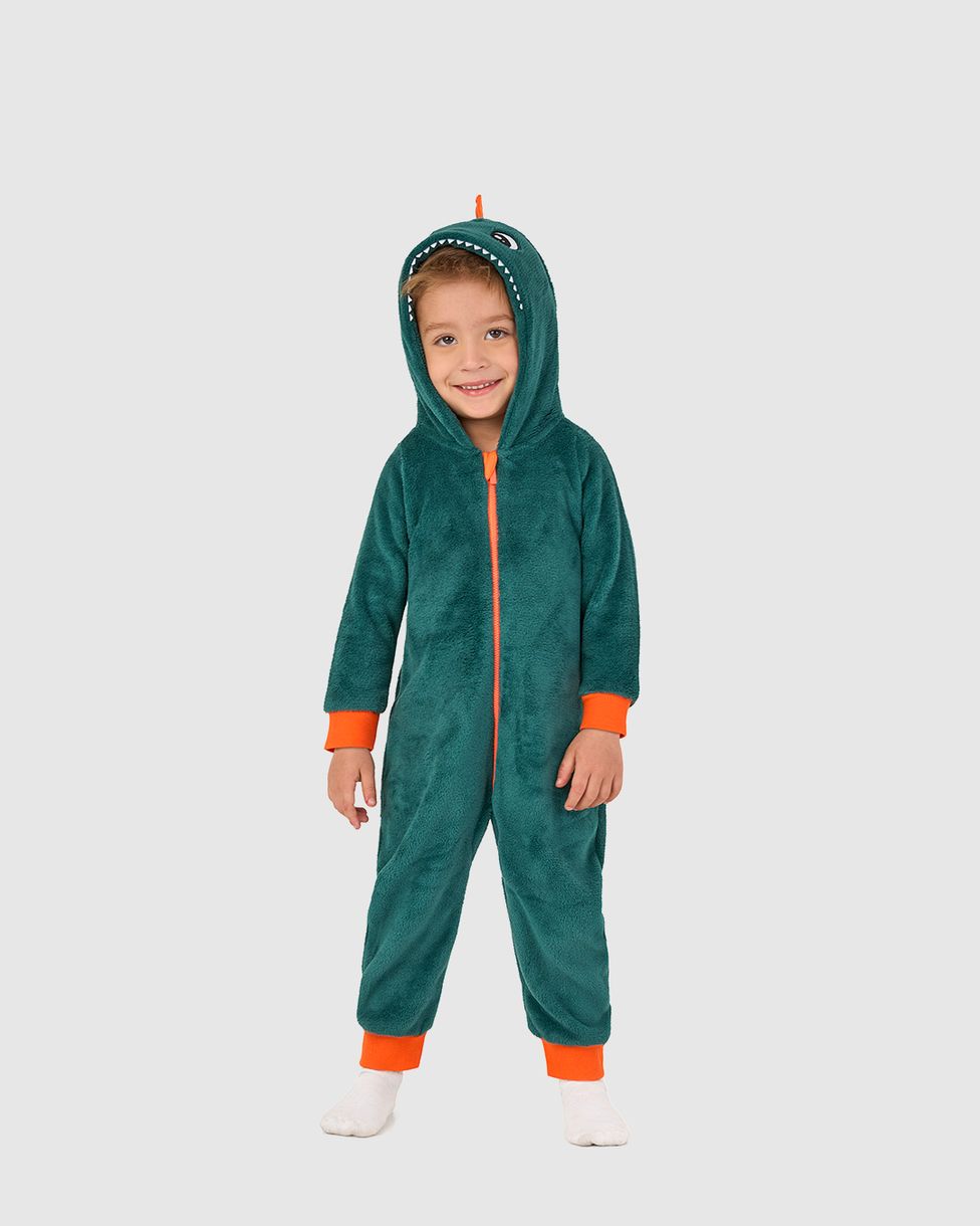 Pijama Macacão Infantil Menino Com Aplique Interativo Em Fleece Malwee Kids