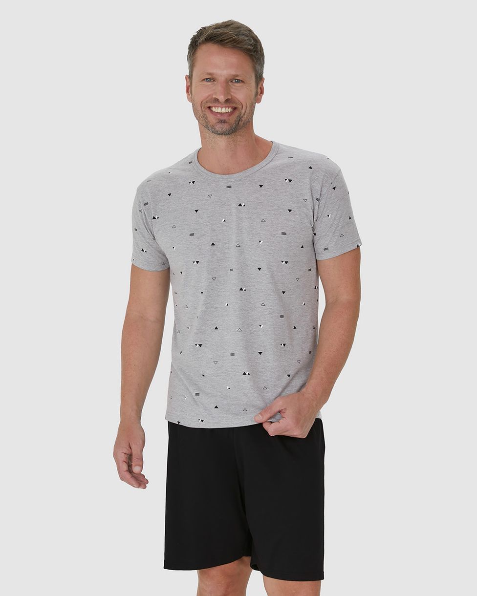 MasculinoPijamasPijamas CurtosPijama Masculino Camiseta Estampada Em Malha Mescla