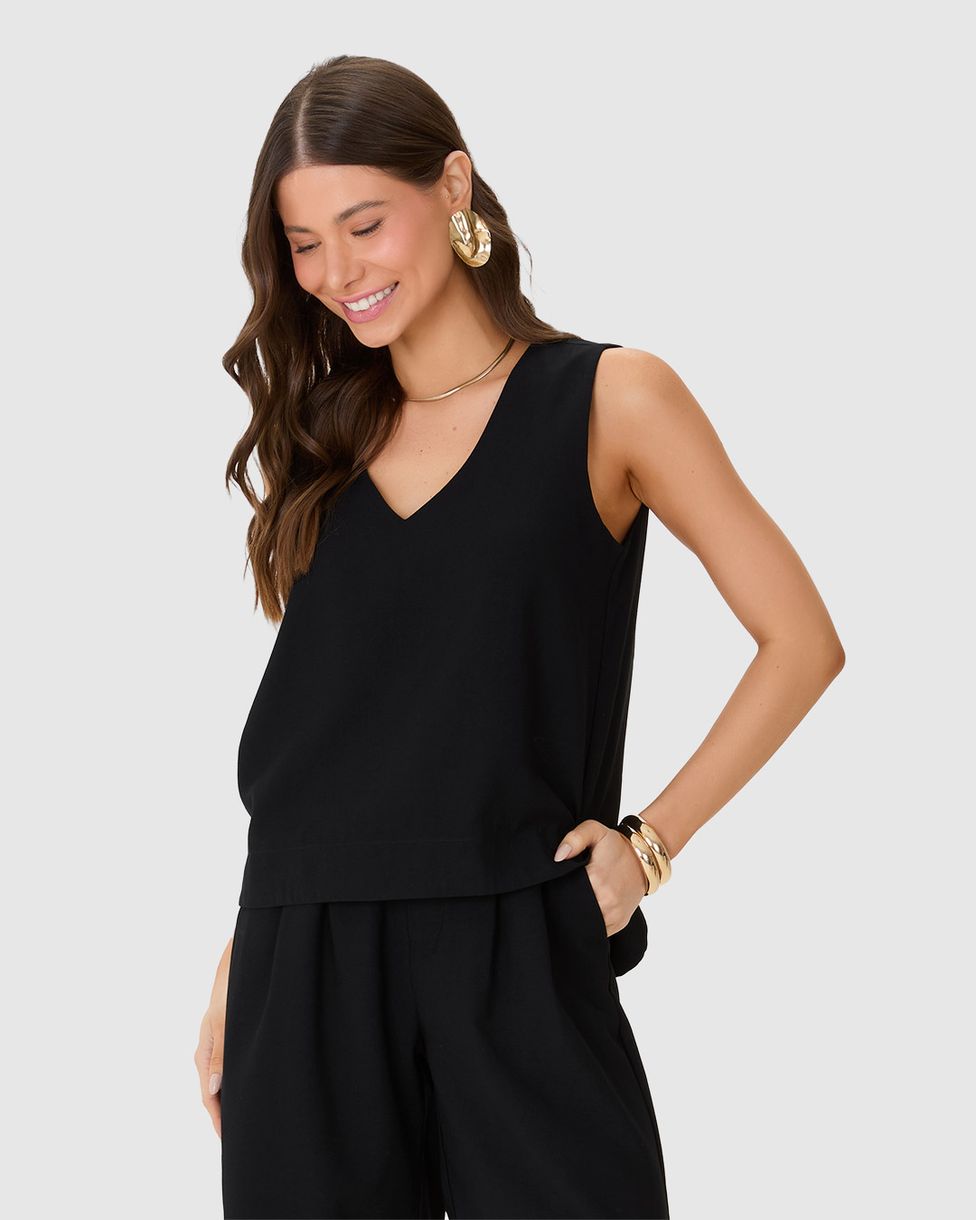 Regata Ampla Feminina Decote V Alça Larga Em Viscose Sarjada