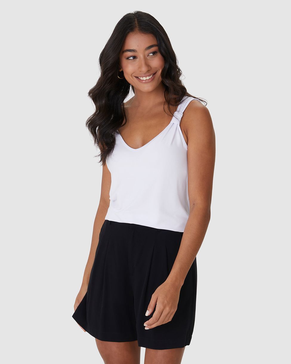 Regata Ampla Feminina Detalhe Alça Em Malha Viscose Stretch