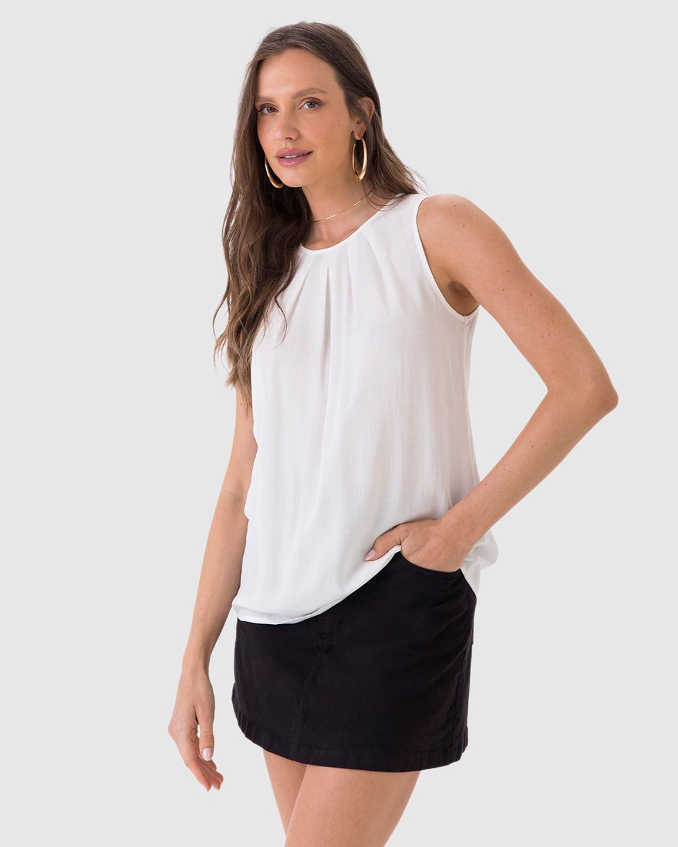 Regata Ampla Feminina Pregas Frontais Em Viscose Sarjada Branco - GG