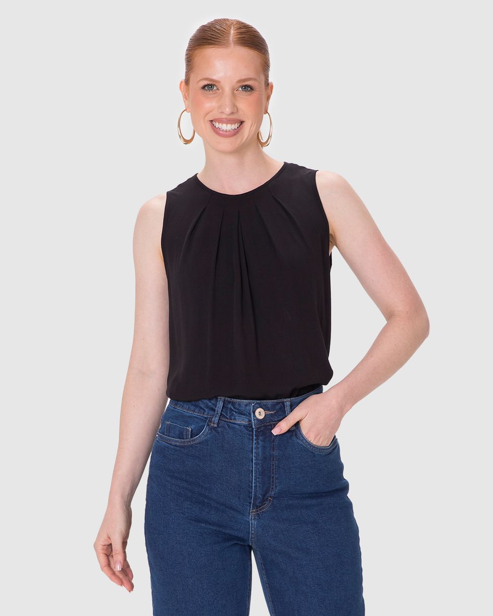 Regata Ampla Feminina Pregas Frontais Em Viscose Sarjada