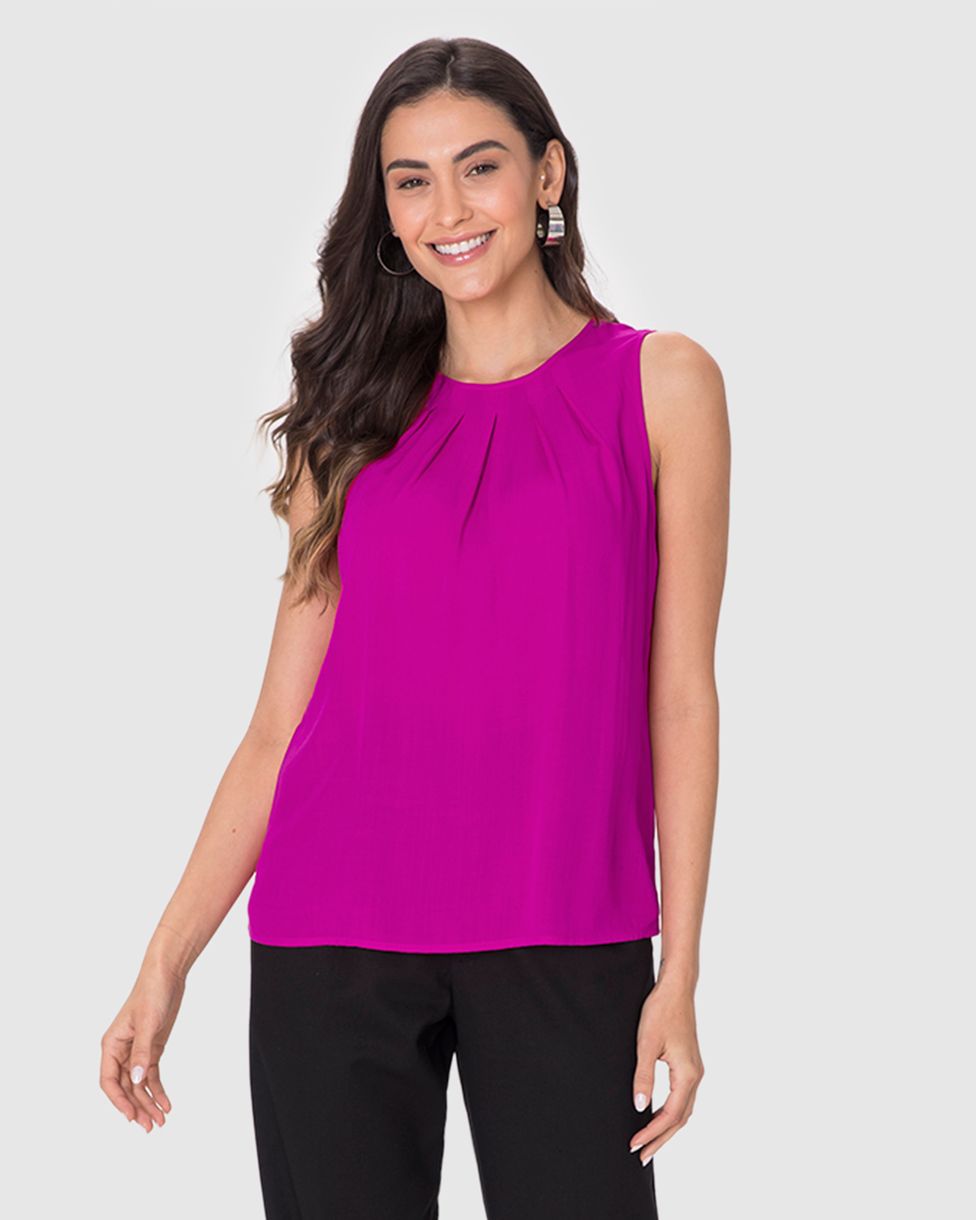 Regata Ampla Feminina Pregas Frontais Em Viscose Sarjada
