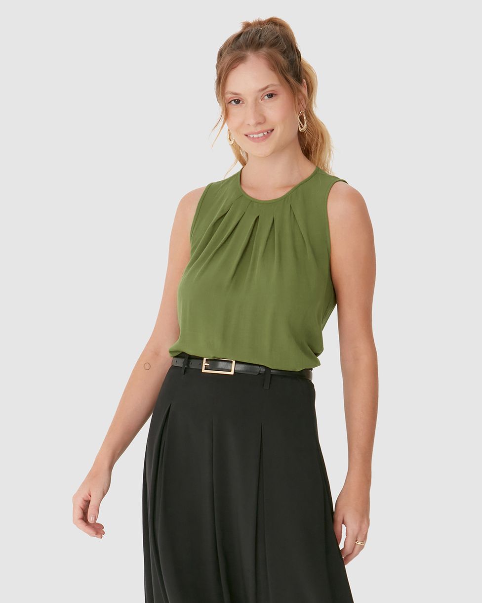 Regata Ampla Feminina Pregas Frontais Em Viscose Sarjada