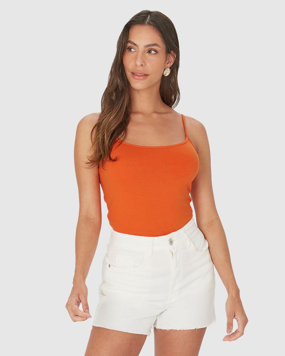 Regata feminina confeccionada em malha com base de 85% de algodão.Apresentando o shape Tradicional, com caimento confortável no corpo, essa regata com alças finas e decote redondo é curinga para os dias mais quentes da estação. Além disso, ela foi feita em tecido confortável de algodão, com toque suave e muita versatilidade no uso. Uma peça perfeita para um dia casual, invista com shorts em jeans e tênis de cano baixo!