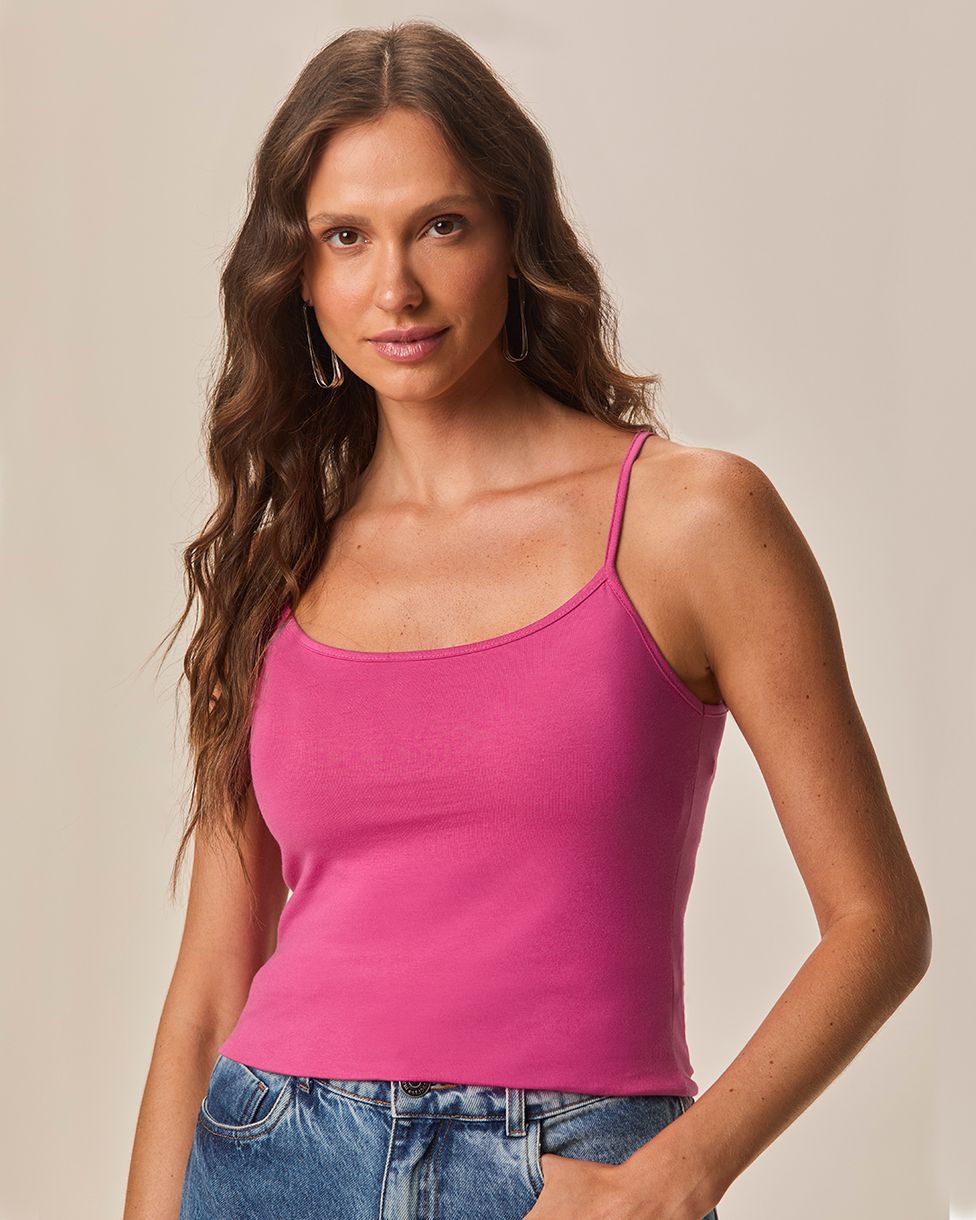 Regata feminina confeccionada em malha com base de 85% de algodão.Apresentando o shape Tradicional, com caimento confortável no corpo, essa regata com alças finas e decote redondo é curinga para os dias mais quentes da estação. Além disso, ela foi feita em tecido confortável de algodão, com toque suave e muita versatilidade no uso. Uma peça perfeita para um dia casual, invista com shorts em jeans e tênis de cano baixo!